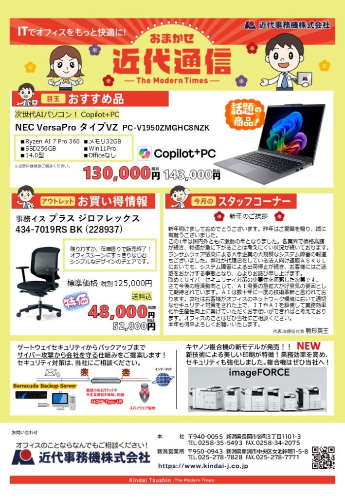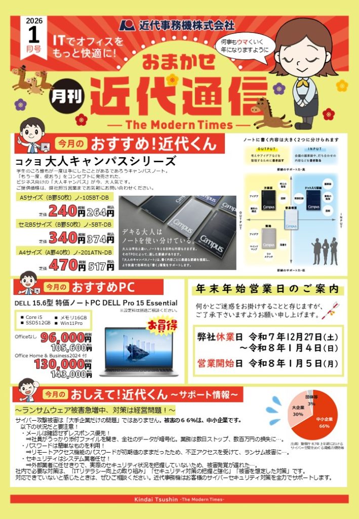 月刊チラシ おまかせ近代通信 2026年1月号 2025年12月25日 最終更新日時 : 2025年12月25日 kindai-j 月刊チラシ おまかせ近代通信 2026年1月号です。 →PDFファイルでダウンロード